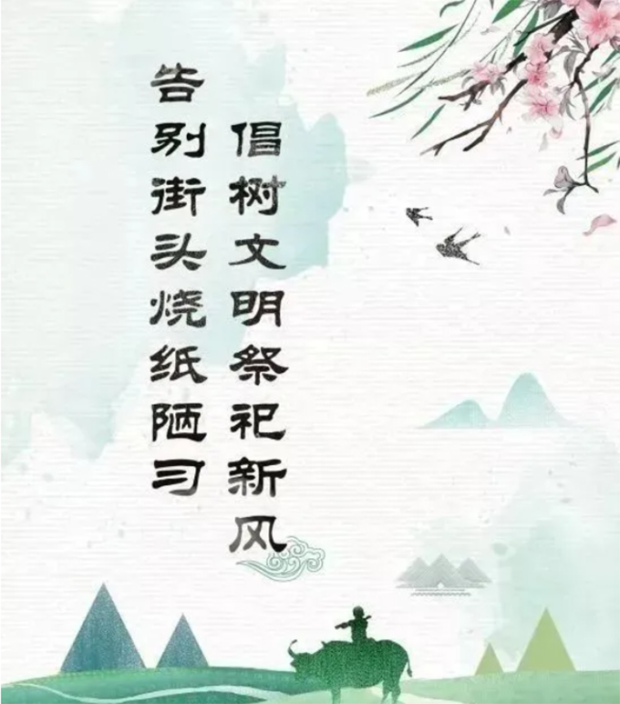 三、倡导绿色低碳祭扫。“思念之意存于心,一束鲜花祭故人”,提倡采用鲜花祭扫、植树缅怀、网络追忆等绿色环保方式祭奠先人、缅怀英烈、感念先辈,摒弃焚香烧纸、燃放鞭炮等陋习,共同营造绿色、文明的祭扫环境。